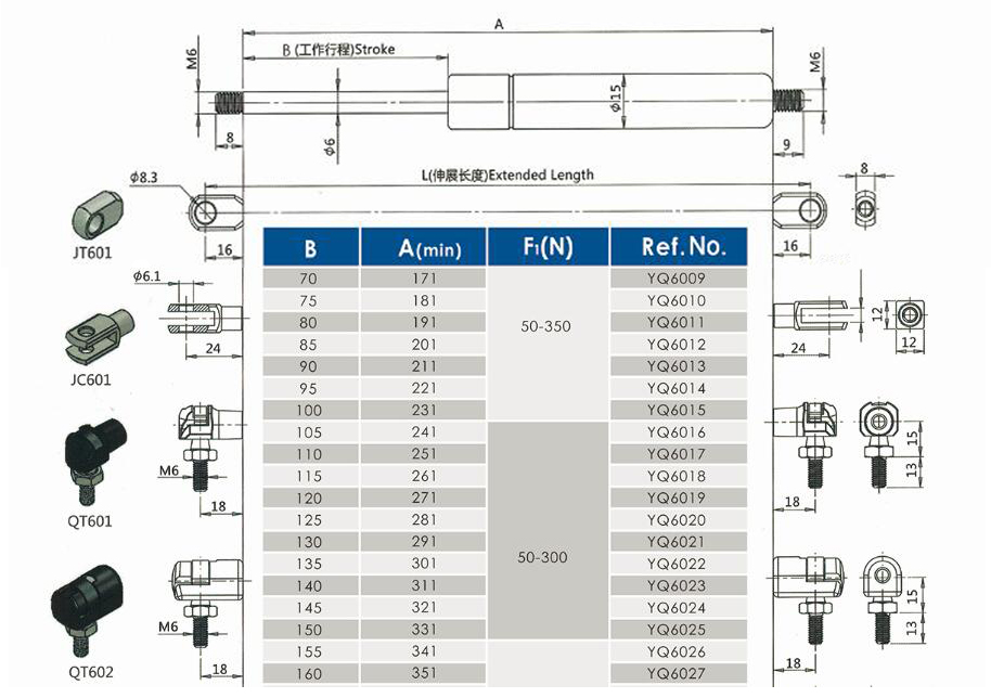 注:由于氣彈簧是非標準的,以上僅為型號的一部分。我們可以根據客戶的要求定制。