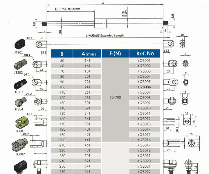 舉升氣彈簧YQ8/18-16